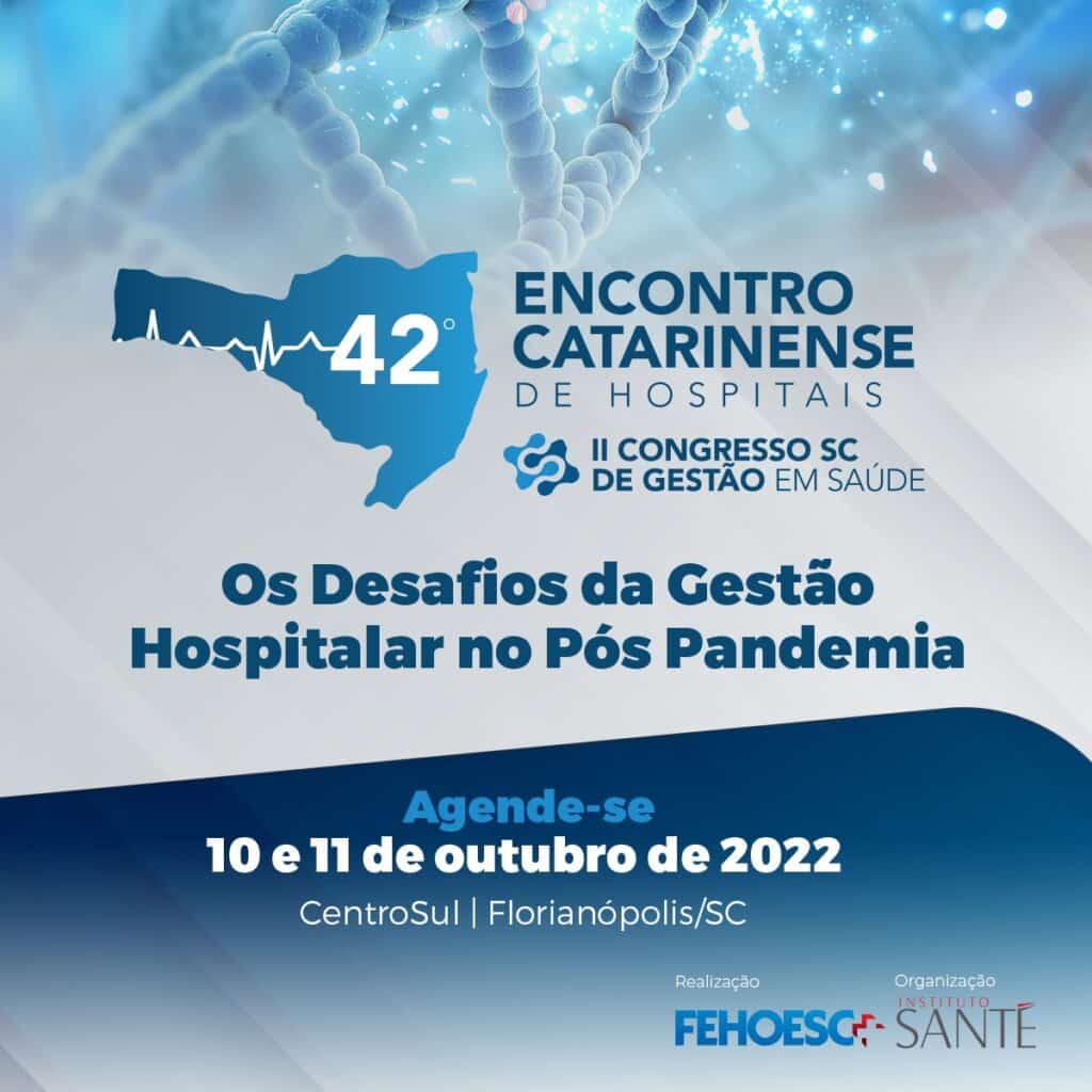A 42ª edição do Encontro Catarinense de Hospitais (ECH) e II Congresso SC de Gestão em Saúde, reunirá nos dias 10 e 11 de outubro em Florianópolis, autoridades da Saúde, gestores hospitalares, clínicas, laboratórios, além de profissionais e estudantes da área. O tema deste ano abordará: “Os desafios da gestão hospitalar no pós-pandemia”. O encontro acontecerá no Centrosul, onde será palco também para a tradicional Feira de Produtos e Serviços, com as novidades para o setor.