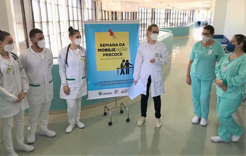 Para reforçar a importância da mobilização dos pacientes fora do leito, a equipe de Fisioterapia do Hospital Regional Terezinha Gaio Basso – Instituto Santé, em parceria com os acadêmicos do 10º Período do Curso de Fisioterapia da Unoesc – São Miguel, começaram nesta terça-feira a Semana da Mobilização Precoce.