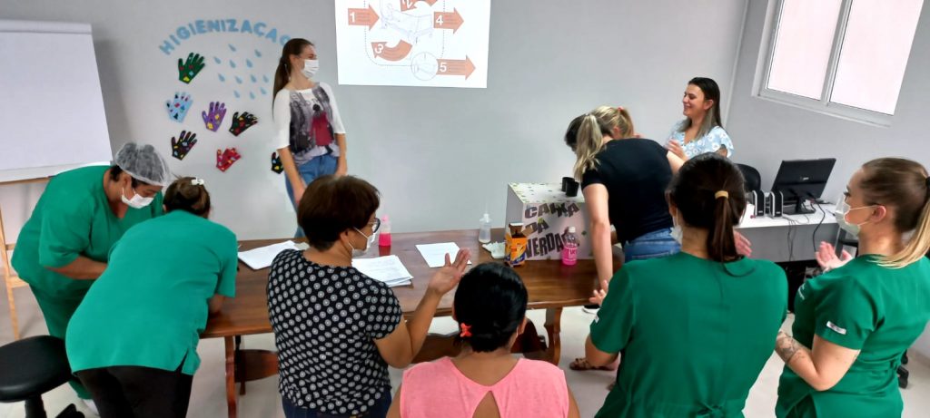 Na saúde, são conhecidos os 5 momentos da higienização que foram trabalhados nas unidades: