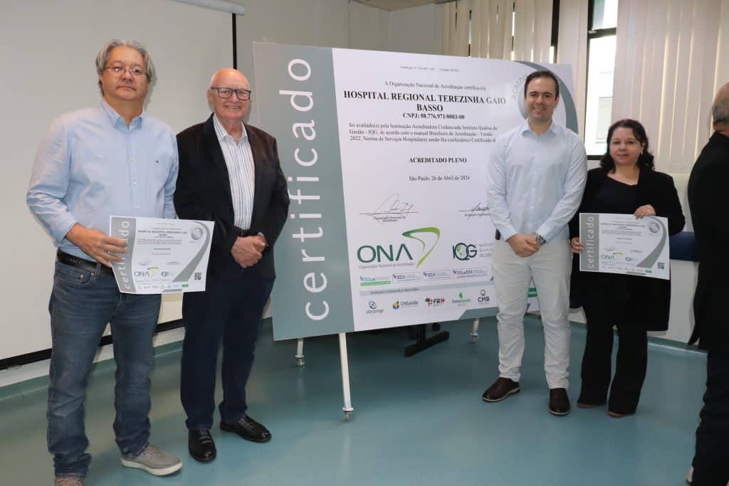 Em um universo de mais de 8.000 hospitais no Brasil, apenas 123 são “Acreditado Pleno” pela Organização Nacional de Acreditação (ONA). O Hospital Regional Terezinha Gaio Basso, de São Miguel do Oeste, está entre as 20 unidades hospitalares públicas no país com este reconhecimento, sendo o único 100% SUS na Região Sul e em Santa Catarina. Na presença de autoridades, colaboradores e convidados, foi celebrada, nesta quarta-feira, 22, a conquista da Certificação ONA Nível II pelo Instituto Santé – Hospital Regional Terezinha Gaio Basso.