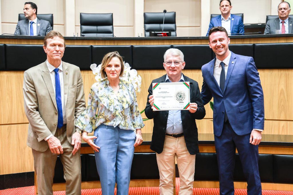 Na noite de quarta-feira, 10 de dezembro, oito unidades sob gestão do Instituto Santé foram reconhecidas durante a solenidade de entrega do Certificado de Responsabilidade Social de Santa Catarina 2025. A cerimônia, promovida pela Assembleia Legislativa de Santa Catarina (Alesc), foi realizada no Plenário Deputado Osni Régis, em Florianópolis, e destacou instituições que desenvolvem ações voltadas ao desenvolvimento sustentável, ao bem-estar social e ao fortalecimento das comunidades onde atuam.